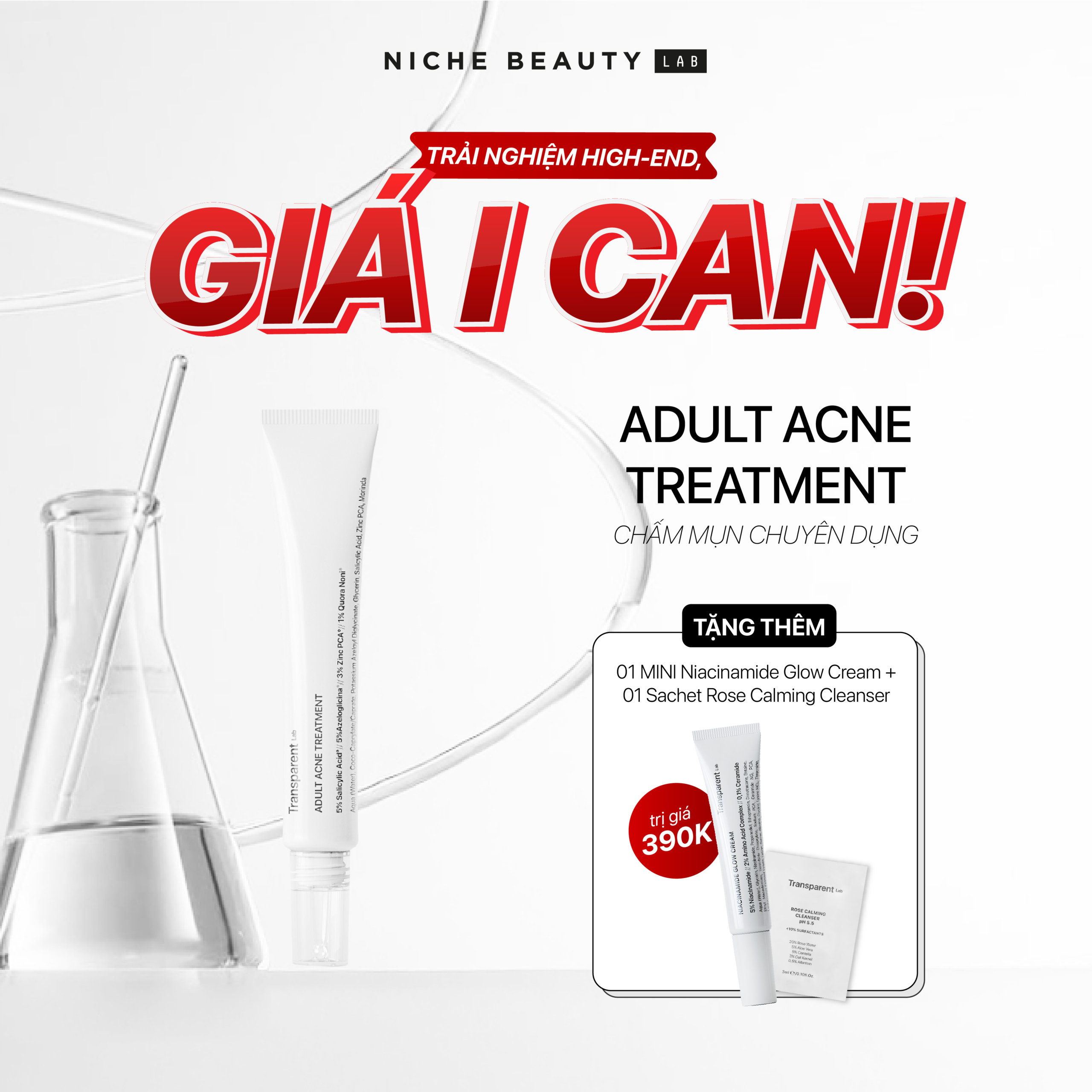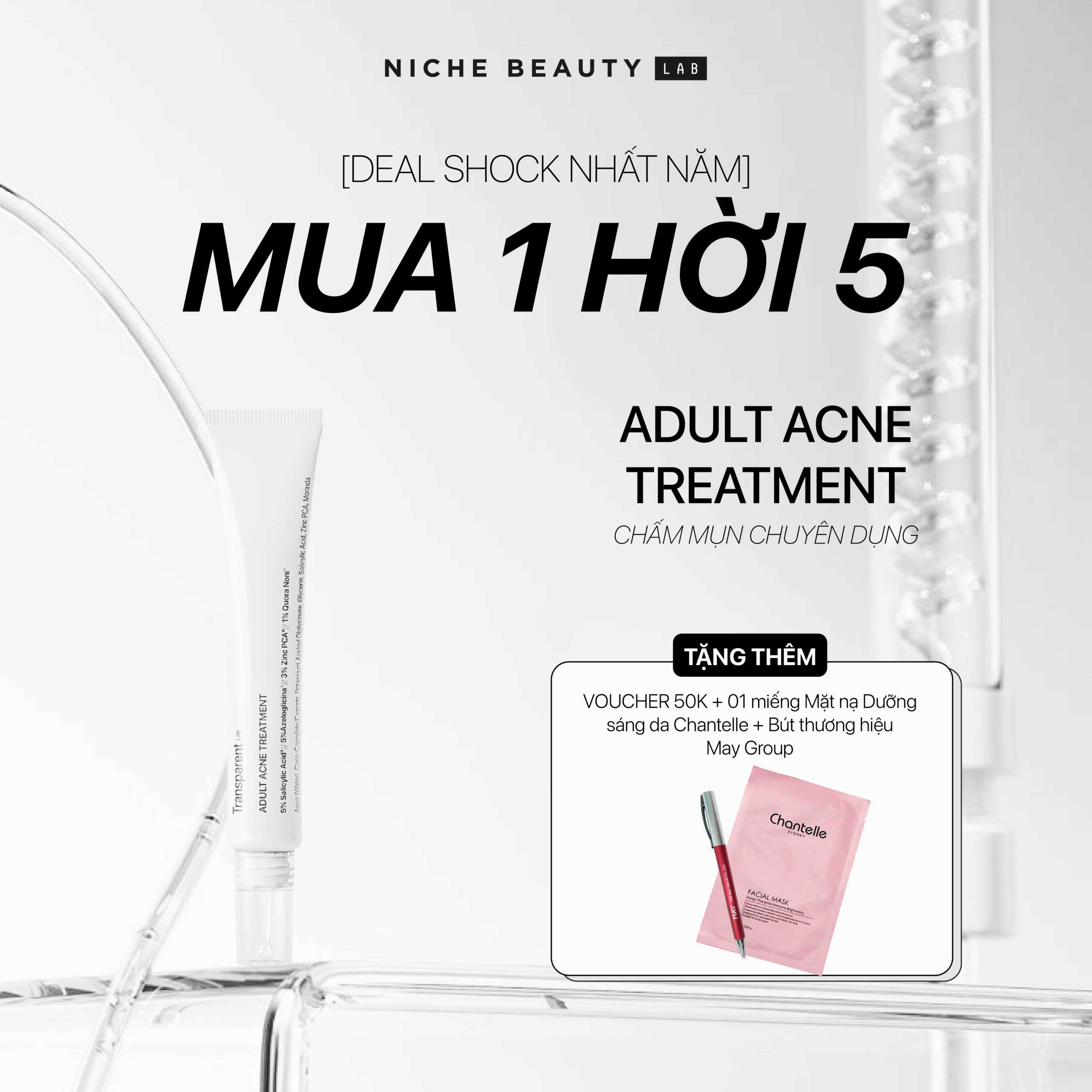 Adult Acne Treatment là giải pháp chấm mụn đa nhiệm dành cho làn da mụn trưởng thành – nơi mụn không chỉ xuất hiện do dầu thừa mà còn liên quan đến stress, nội tiết, môi trường và sự suy yếu hàng rào da. Sản phẩm mang đến một cơ chế điều trị – phục hồi – cân bằng toàn diện: