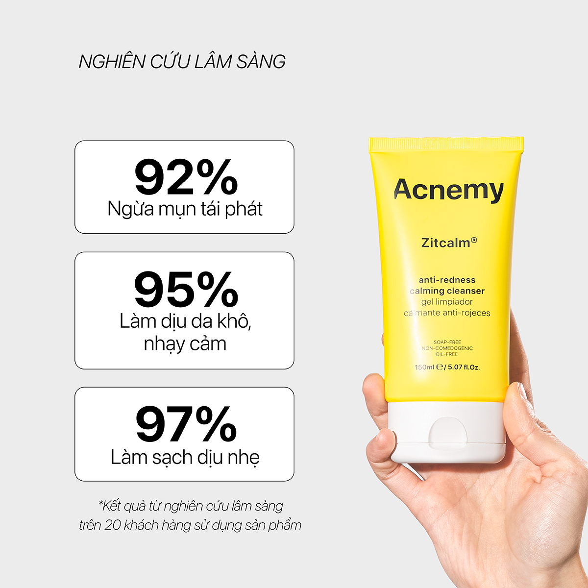 So với các sản phẩm rửa mặt dành cho da mụn thông thường, Zitcalm® Cleanser khác biệt ở cách tiếp cận làm sạch – làm dịu – phục hồi. Sản phẩm không chỉ giúp da sạch thoáng mà còn hỗ trợ giảm các tác dụng phụ thường gặp sau các liệu trình trị mụn tích cực như khô căng, châm chích hay đỏ rát. Nhờ khả năng cân bằng hệ vi sinh và củng cố hàng rào bảo vệ da, Zitcalm® Cleanser tạo điều kiện để da phục hồi nhanh hơn, ổn định hơn và hạn chế mụn quay trở lại trong suốt quá trình điều trị lâu dài.