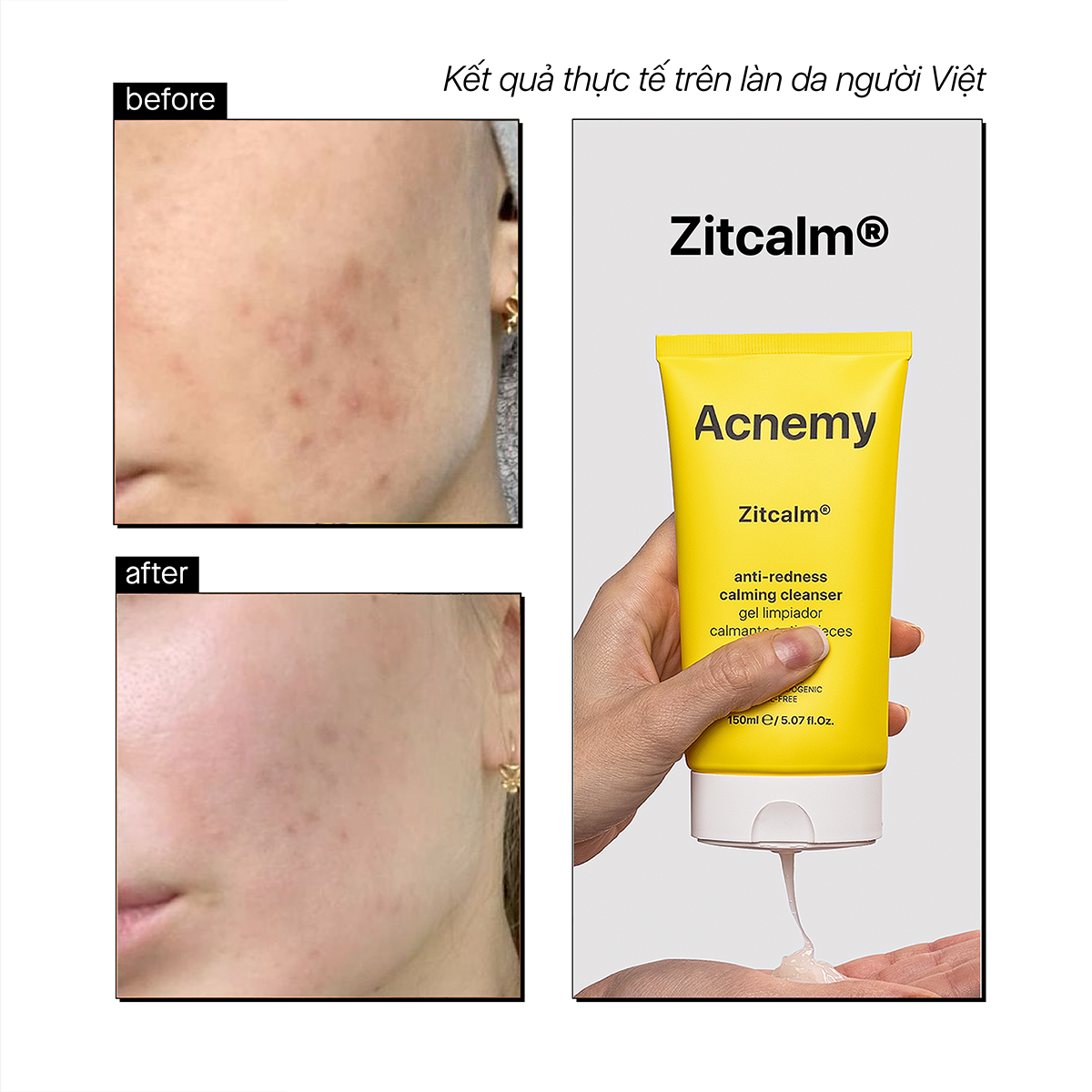 Zitcalm® Cleanser là gel rửa mặt dịu nhẹ, được thiết kế dành riêng cho làn da nhạy cảm, khô hoặc đang suy yếu sau các liệu trình trị mụn mạnh. Sản phẩm giúp làm sạch hiệu quả mà không làm tổn hại hàng rào bảo vệ da, đồng thời làm dịu da, giảm cảm giác căng rát và hỗ trợ ngăn ngừa mụn tái phát, mang lại làn da sạch thoáng, mềm mịn và dễ chịu hơn rõ rệt sau mỗi lần sử dụng.
