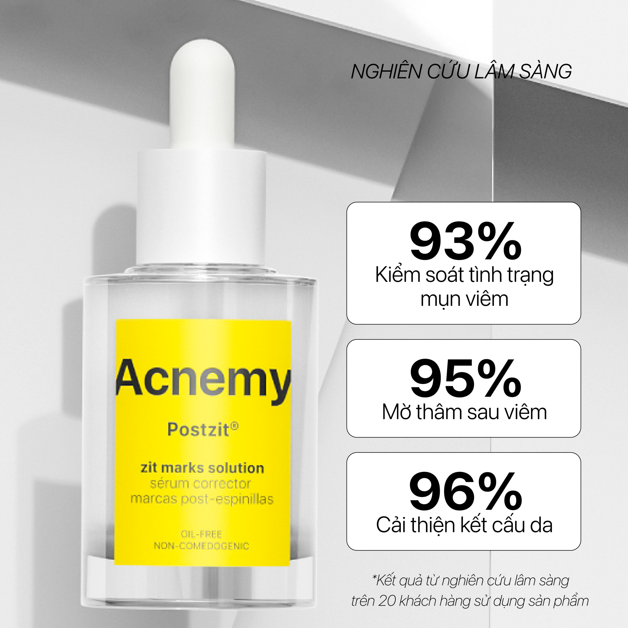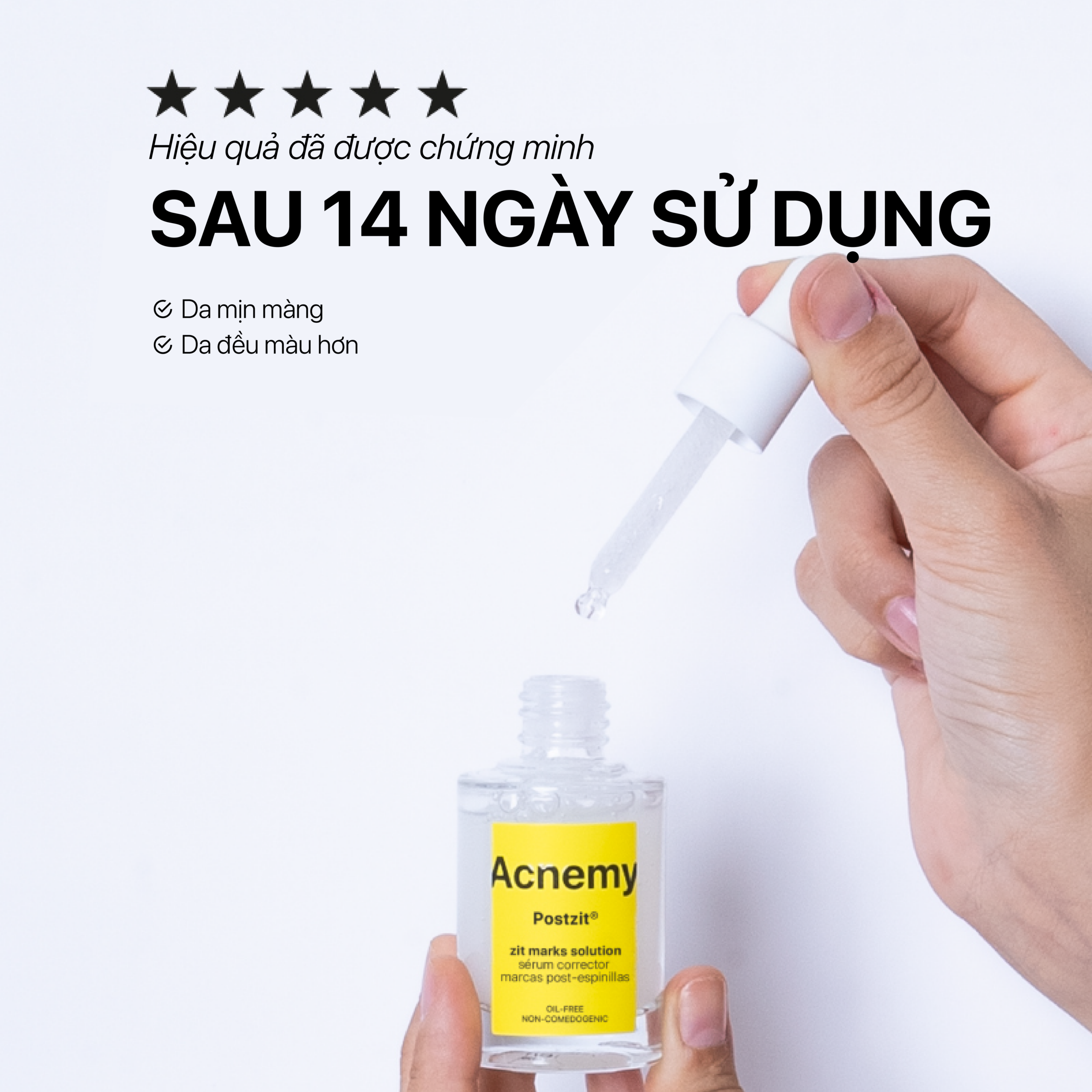 Postzit® không chỉ làm mờ thâm sau mụn mà còn xử lý tận gốc nguyên nhân: viêm – thâm – tái mụn. Công thức chứa AHA, BHA, Niacinamide, Azeloglicina và Quora Noni kết hợp công nghệ Nichosome® độc quyền giúp giảm thâm nhanh, phục hồi da và ngăn mụn quay trở lại mà không gây kích ứng.