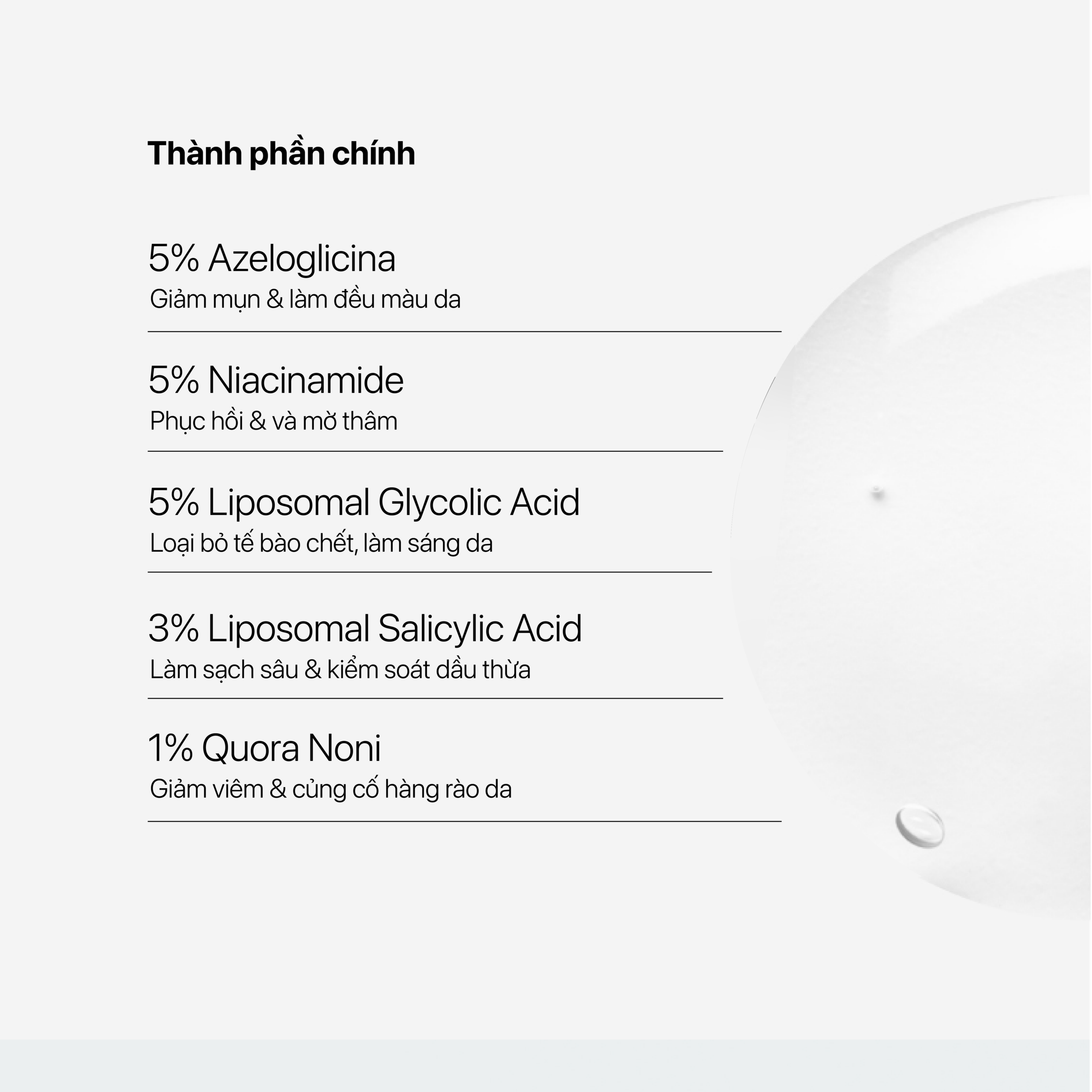 Dẫn xuất BHA được bọc vi nang giúp làm sạch sâu lỗ chân lông, loại bỏ dầu thừa và tạp chất mà không làm khô da. Salicylic Acid còn hỗ trợ giảm viêm, làm dịu các nốt mụn còn lại, và ngăn ngừa hình thành mụn mới, giúp làn da được thanh lọc và thông thoáng.