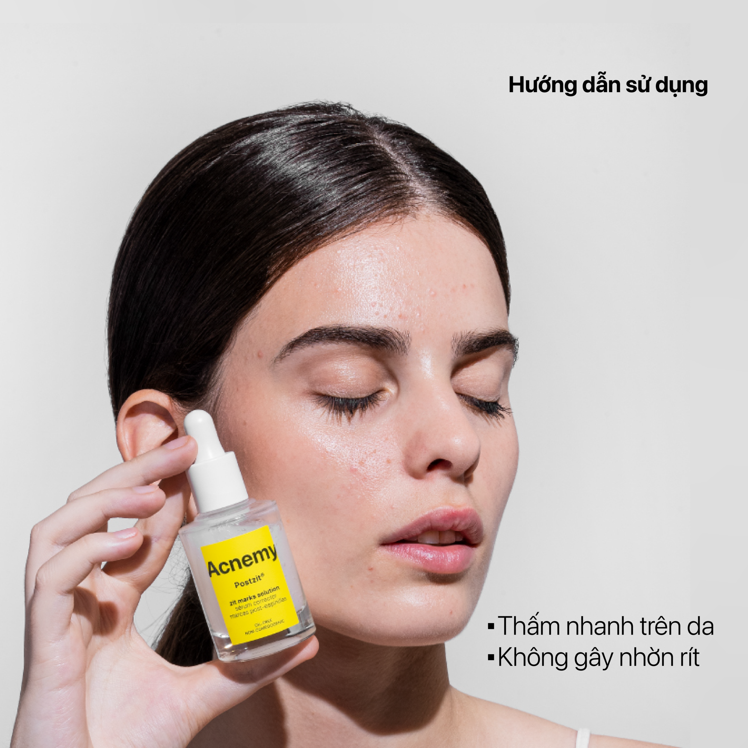 Huyết thanh Postzit chứa Glycolic Acid, giúp mờ vết thâm sau mụn, cải thiện bề mặt da và đều màu da rõ rệt. Và nếu vẫn còn vài nốt mụn “cứng đầu” quanh đó, công thức đã được bổ sung thêm Salicylic Acid cùng Quora Noni giúp ngăn vi khuẩn P.Acnes gây mụn sinh sôi và cân bằng hệ vi sinh da.