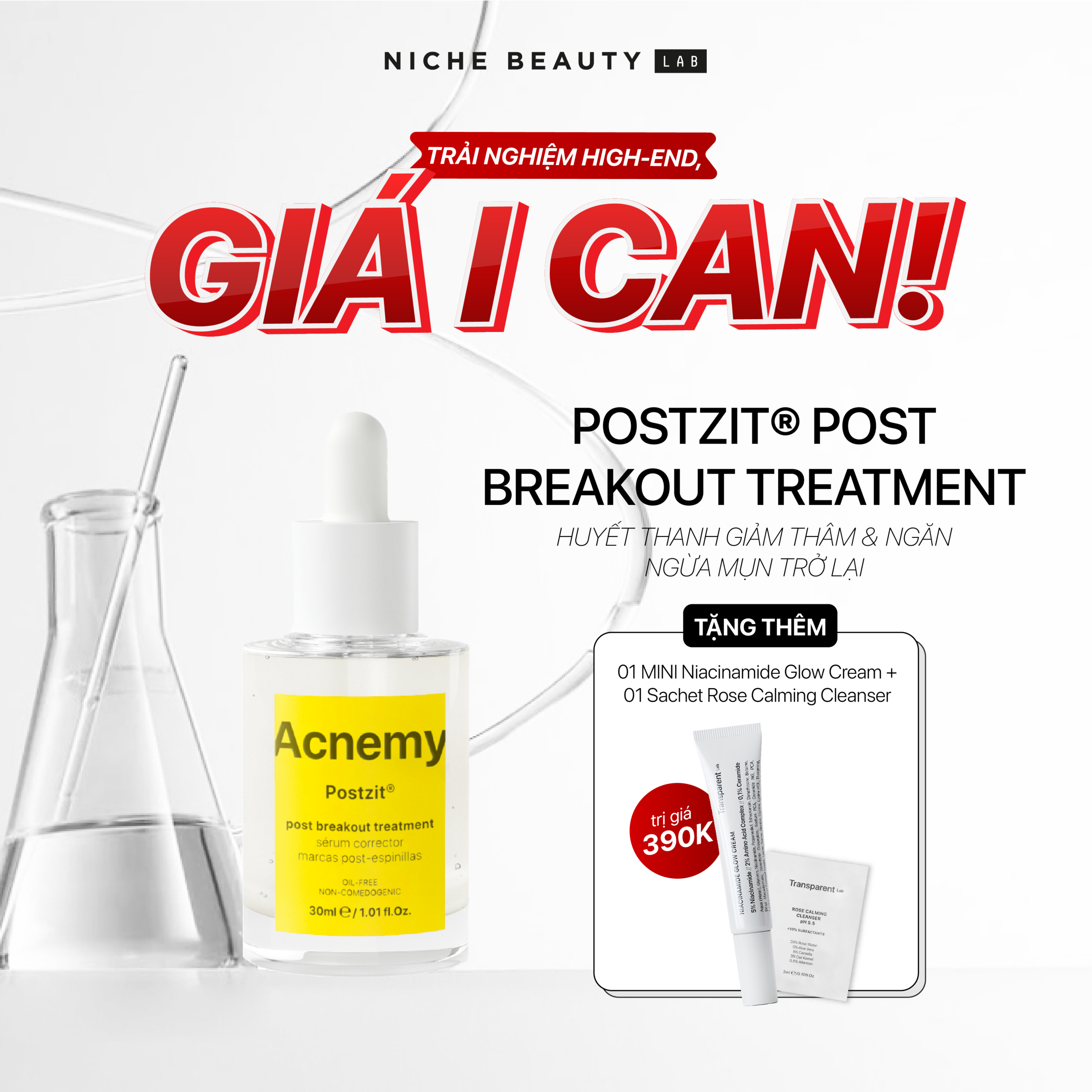 Những vết đỏ, thâm mờ sau mụn cứ mãi ở lại khiến làn da trở nên không đều màu và dễ kích ứng. Huyết thanh Postzit® chính là “bước giải cứu cuối cùng” sau khi mụn biến mất: giúp xóa mờ dấu vết hậu mụn, cải thiện sắc tố, làm mịn bề mặt da và tái cân bằng hệ vi sinh chỉ trong vài tuần sử dụng.