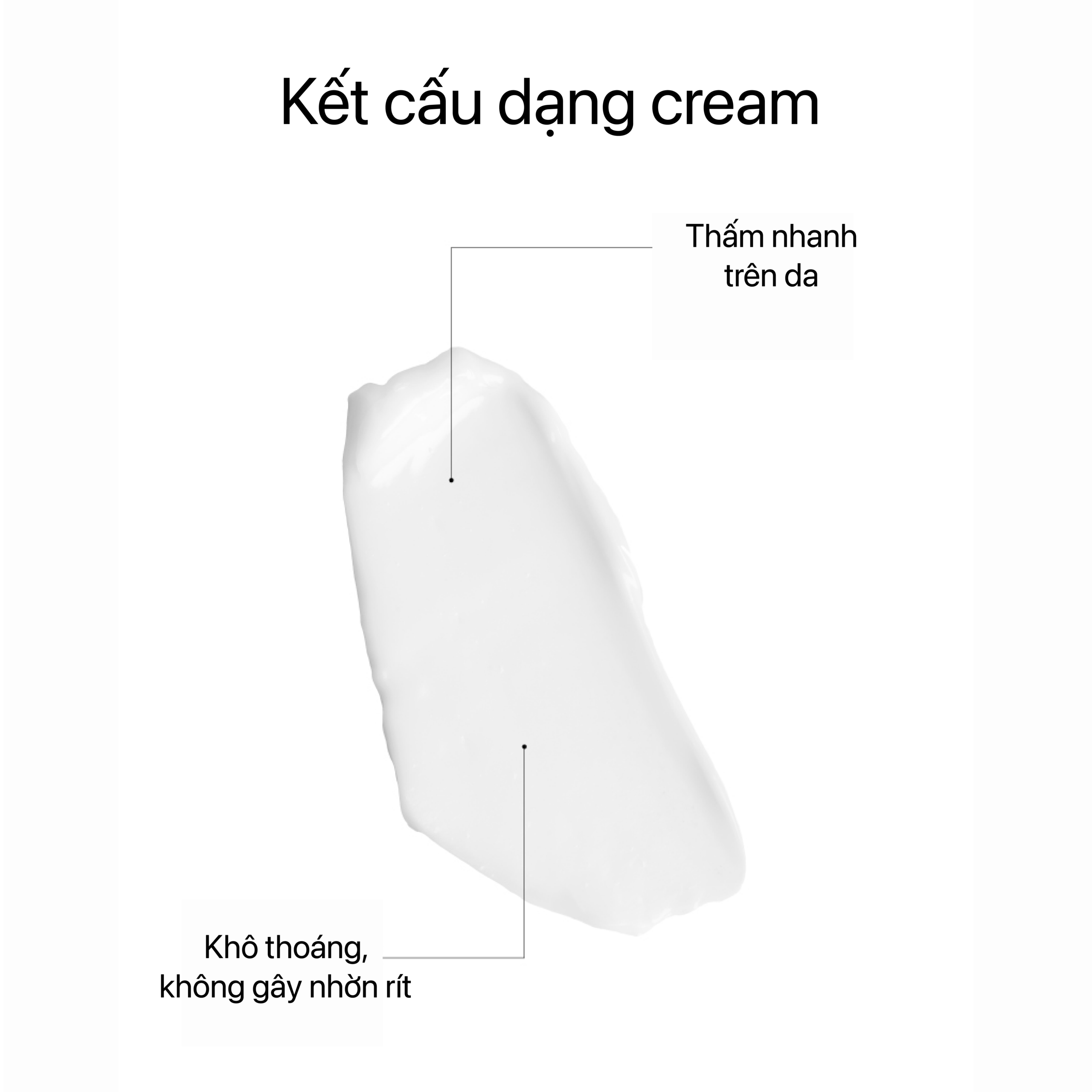 Công thức dưỡng ẩm chuyên sâu kết hợp Peptide Complex giúp hỗ trợ tăng cường độ đàn hồi, làm da săn chắc hơn, trong khi Centella Stem Cells giúp làm dịu, cấp ẩm và giảm cảm giác nhạy cảm. Phù hợp với mọi loại da, kể cả da nhạy cảm, kem có thể sử dụng cả ngày và đêm, mang lại làn da mịn màng, săn chắc và rạng rỡ hơn theo thời gian.
