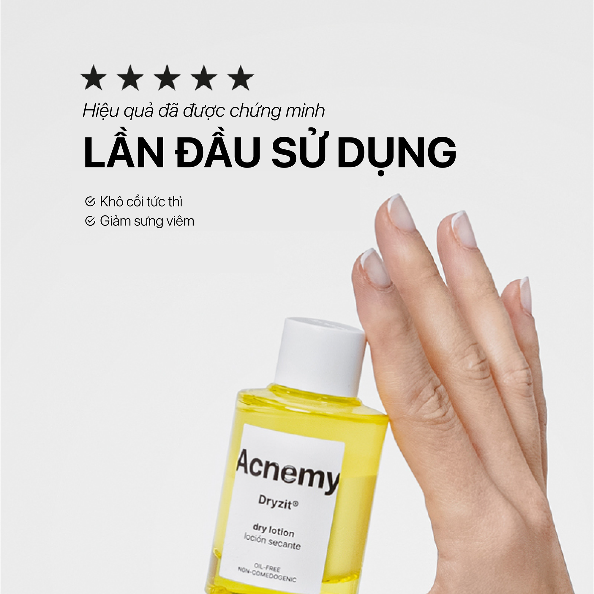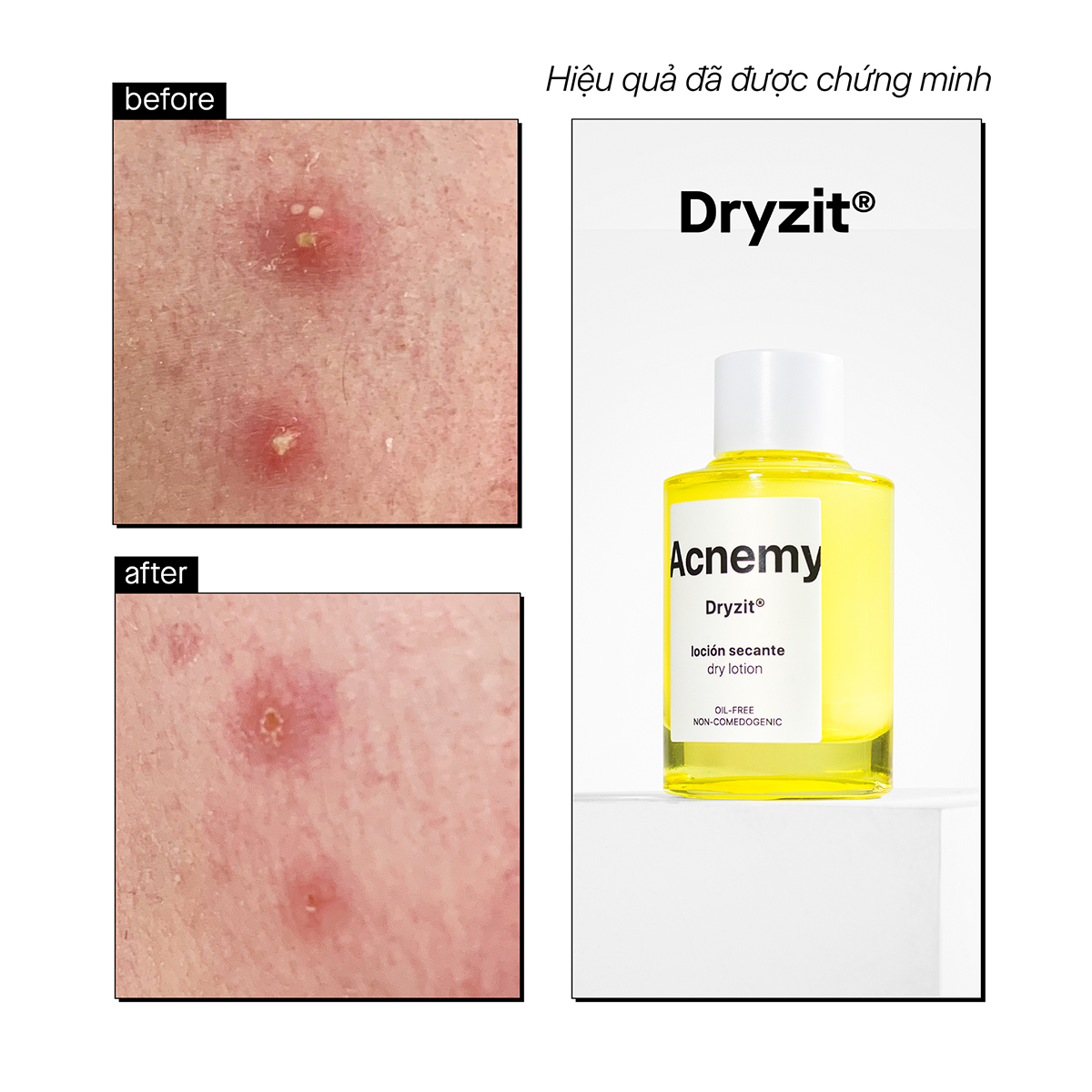 Tốc độ cải thiện có thể thay đổi tùy mức độ mụn, nhưng nhìn chung Dryzit® mang lại hiệu quả làm khô còi nhanh và giảm viêm rõ rệt.
