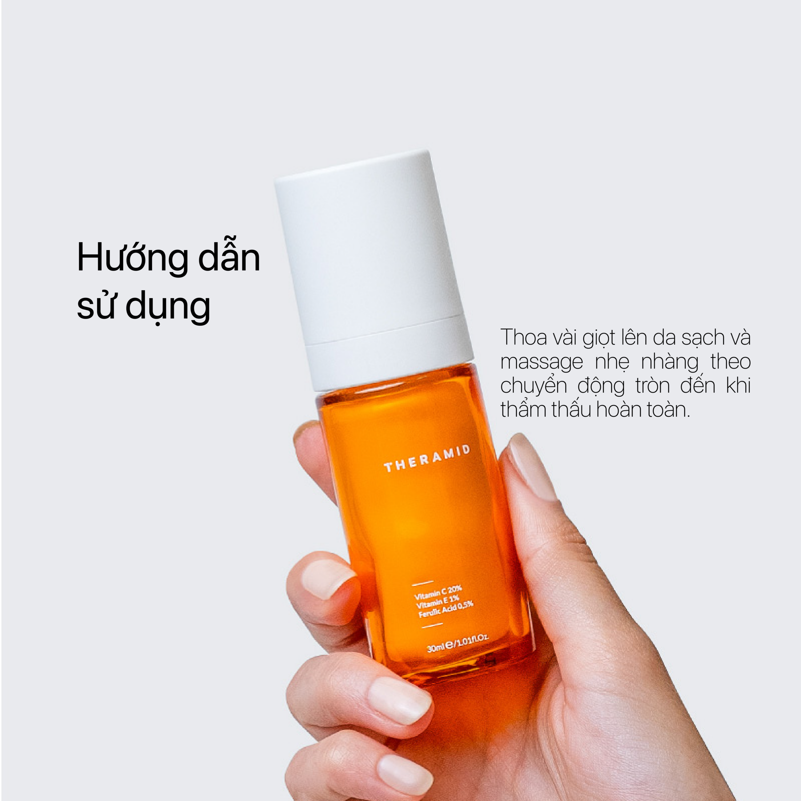 Thoa vài giọt lên da sạch và massage nhẹ nhàng theo chuyển động tròn đến khi thẩm thấu hoàn toàn.