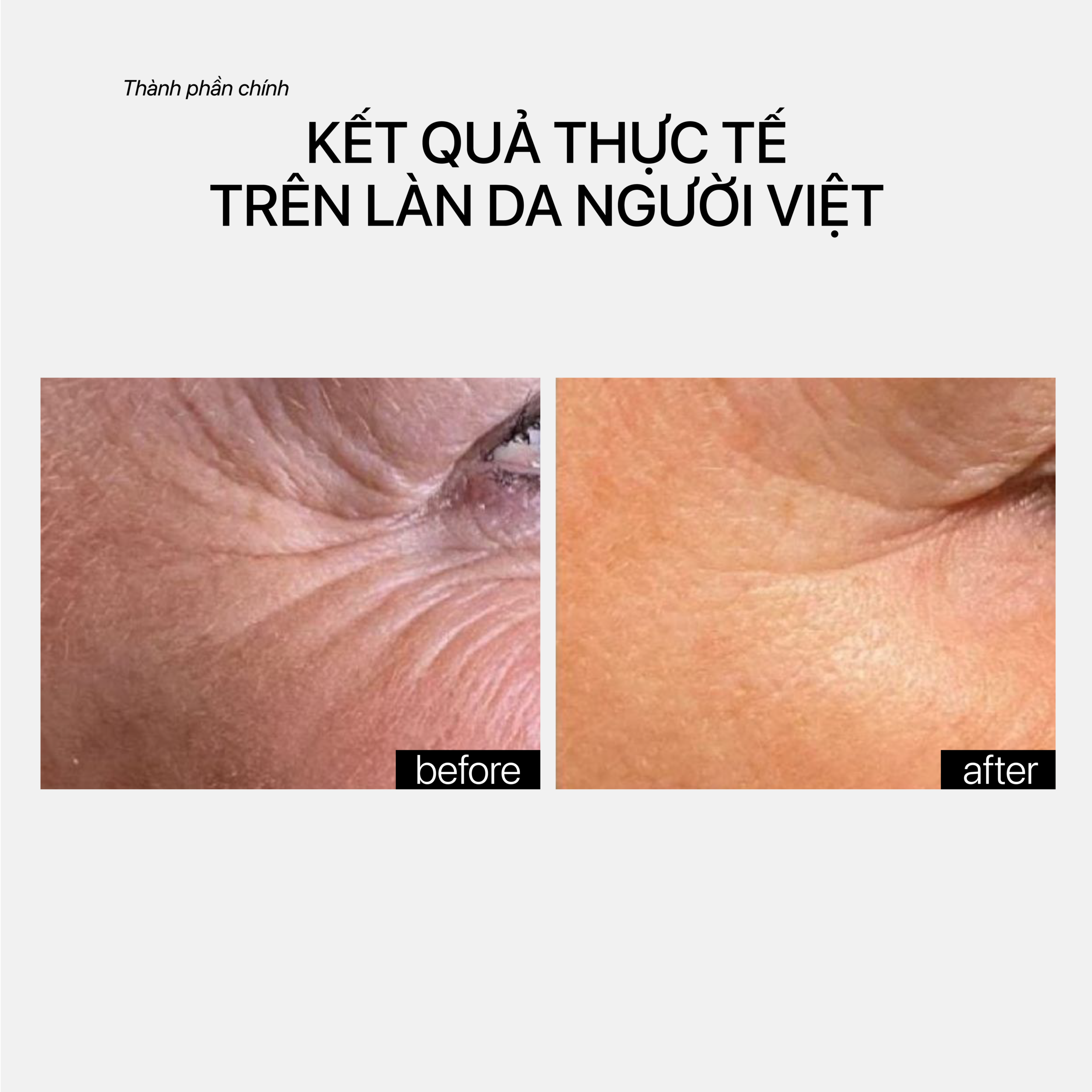 Sản phẩm được phát triển với sự kết hợp độc đáo của 9 loại Peptide biomimetic (Peptide mô phỏng sinh học) giúp thẩm thấu nhanh, tăng cường sản sinh collagen và elastin, giảm nếp nhăn và các rãnh nhăn nhỏ, mang lại làn da mịn màng, tươi trẻ và săn chắc hơn.