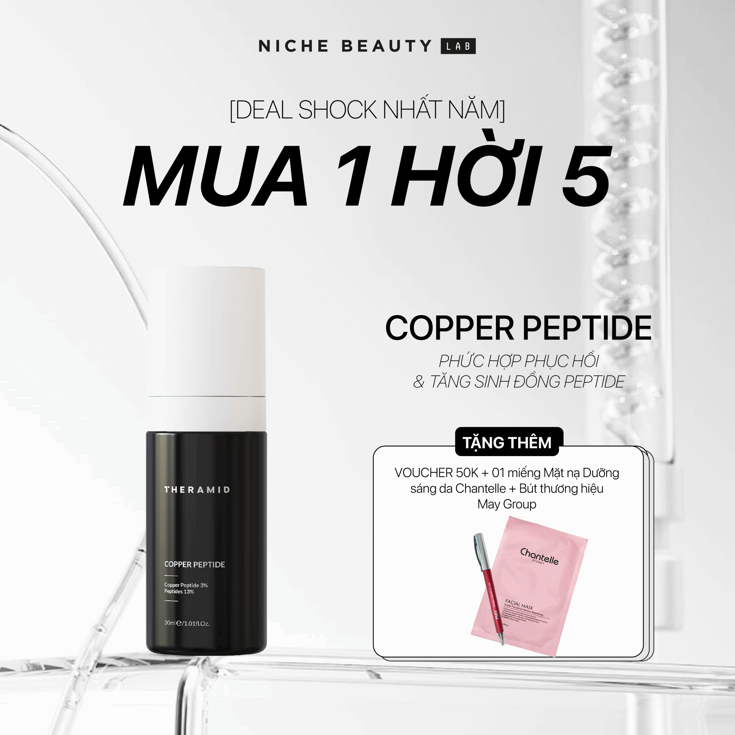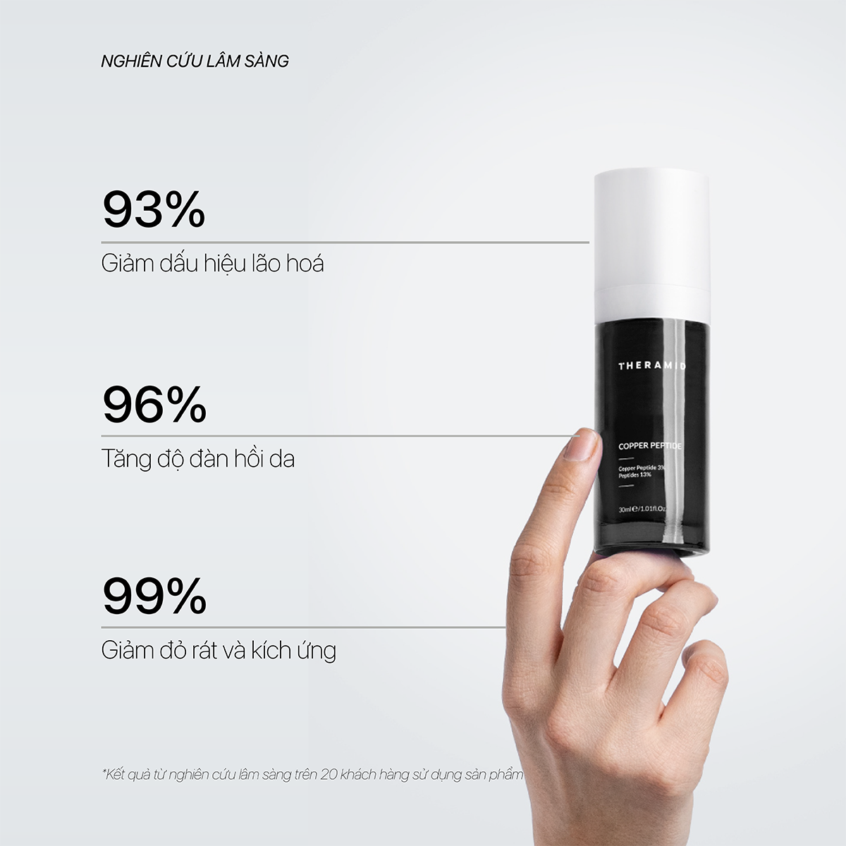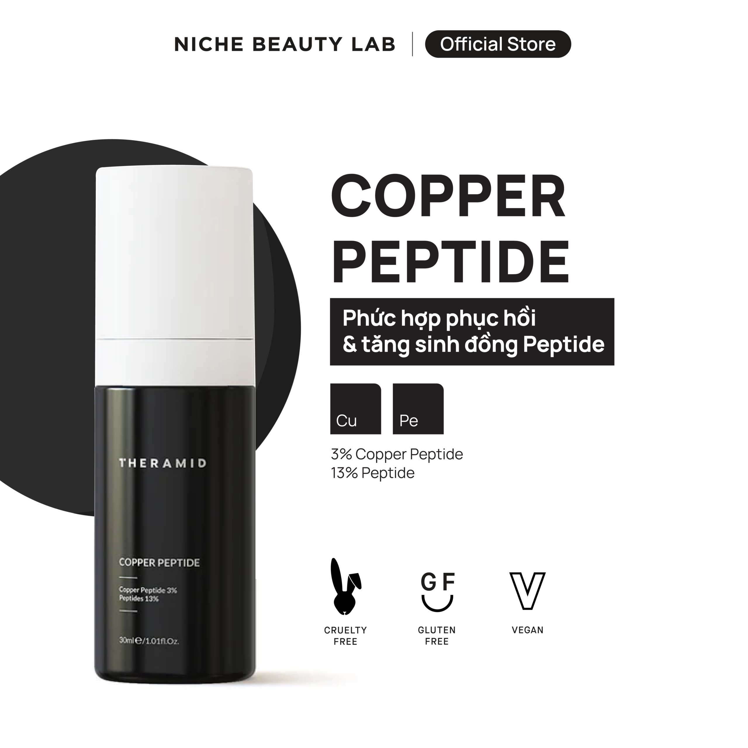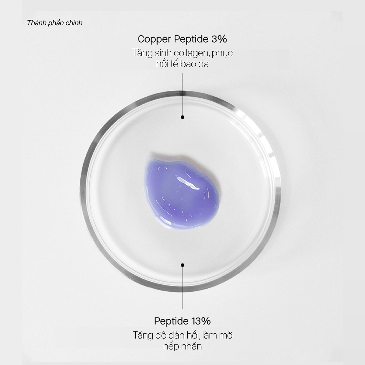 Công thức chứa 3% Copper Peptide tinh khiết – nồng độ tối ưu trên thị trường, giúp: