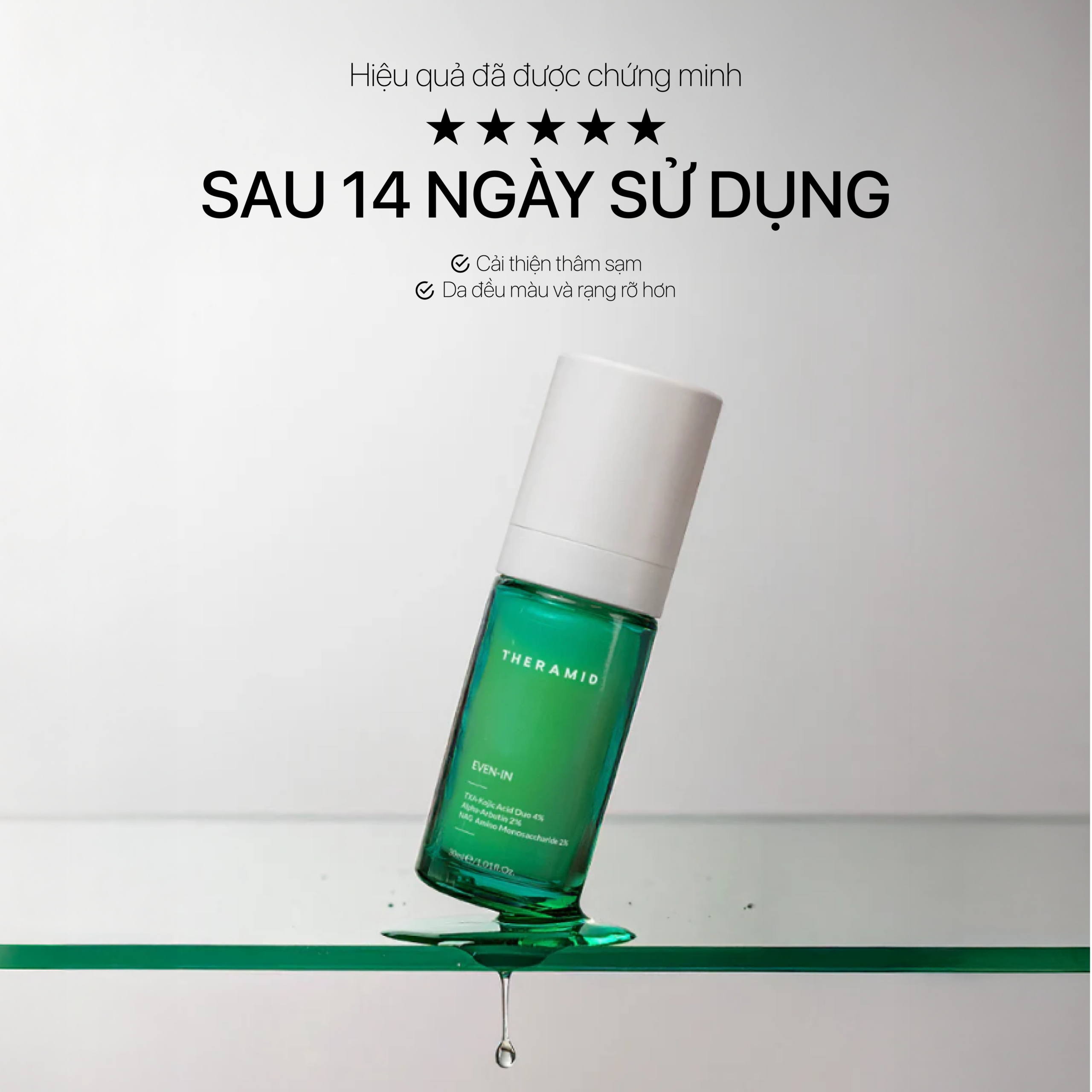 Giúp giảm thiểu tình trạng tăng sắc tố và các vết thâm. Cải thiện độ đều màu, mang lại làn da sáng mịn và rạng rỡ hơn.