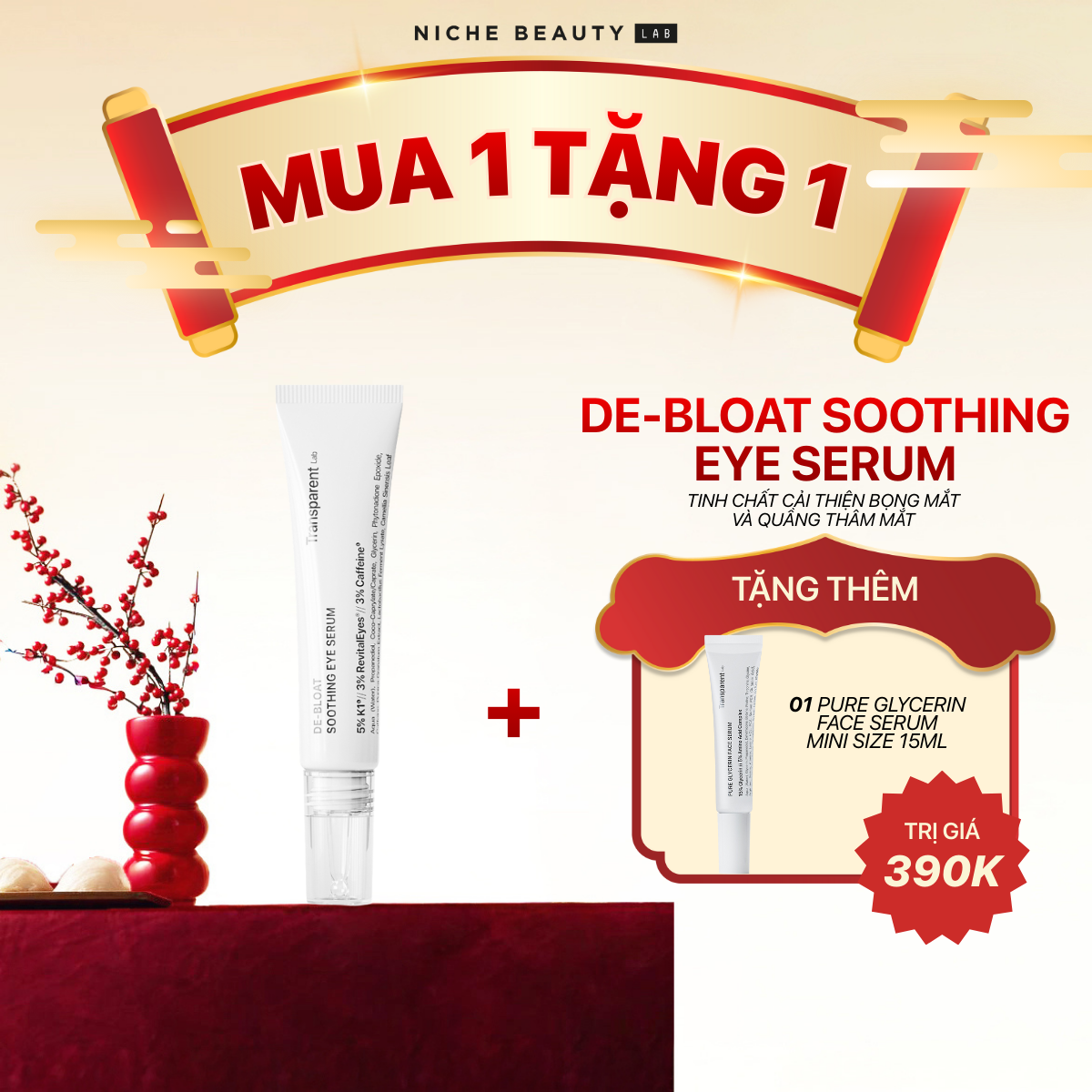 Sau 3 – 4 tuần sử dụng đều đặn: Bọng mắt và quầng thâm giảm rõ rệt, vùng da quanh mắt sáng và đều màu hơn.