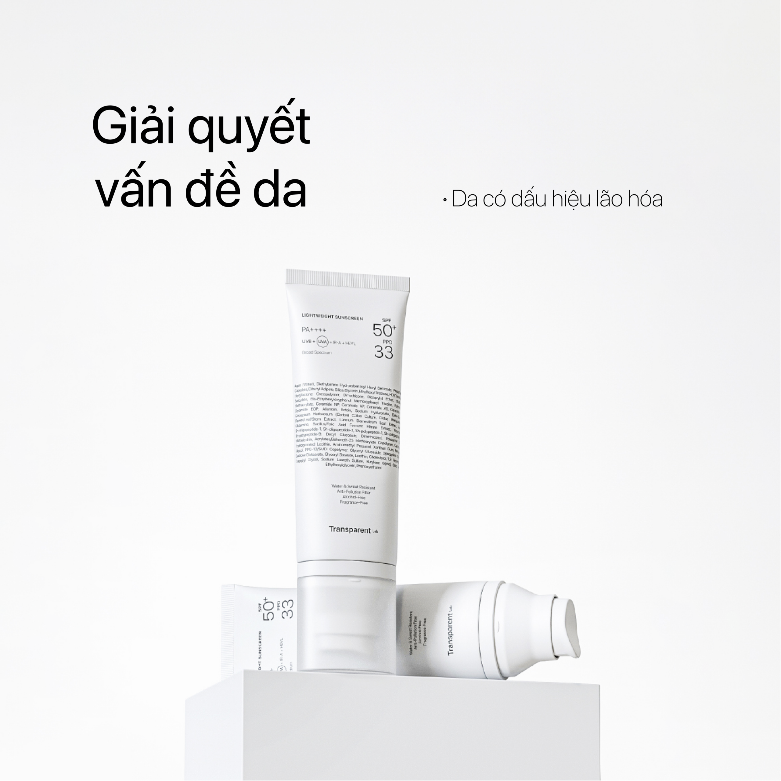 Kem chống nắng Lightweight Sunscreen SPF50+ sở hữu kết cấu mỏng nhẹ, thẩm thấu nhanh, mang lại cảm giác khô ráo và dễ chịu ngay sau khi thoa. Sản phẩm cung cấp khả năng bảo vệ da phổ rộng trước tia UVA, UVB và HEVL (ánh sáng xanh), đồng thời hỗ trợ dưỡng ẩm, phục hồi và làm chậm các dấu hiệu lão hóa do ánh nắng và ô nhiễm môi trường. Công thức được bổ sung phức hợp Ceramides, Allantoin và Beta-Glucan giúp tăng cường hàng rào bảo vệ da, duy trì độ ẩm ổn định và cải thiện độ mịn màng của làn da theo thời gian.